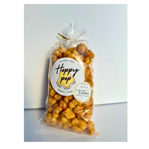 Hoppy Pop is our family’s answer: a hulless (no kernel) gourmet caramel corn that’s perfectly light, crispy, and irresistibly smooth. No crunching on hard bits—just pure, melt-in-your-mouth goodness.